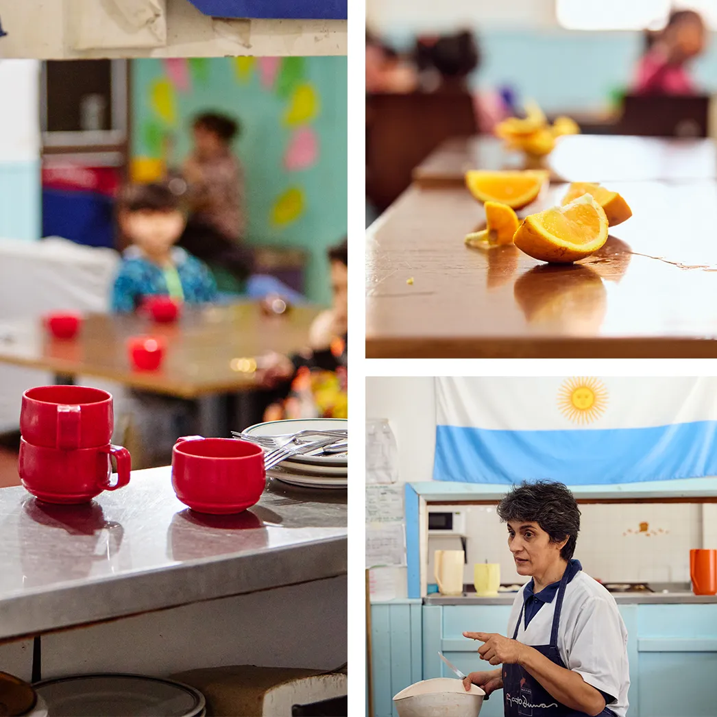 An den Stühlen kleben Namensschilder, über der Küche hängt die argentinische Flagge mit der gelben Sonne. Ordnung, Wärme. Schon die kleinen Dinge sollen den Kindern Stabilität vermitteln, eine Idee der Geborgenheit. Köchin Alicia kommt mit Pudding, am Tisch sitzt auch Gimena Gomez, die als pädagogische Psychologin im Heim arbeitet. Sie kennt jedes einzelne Kind. Seine Geschichte, seine Marotten. Sein Lachen, sein Weinen.