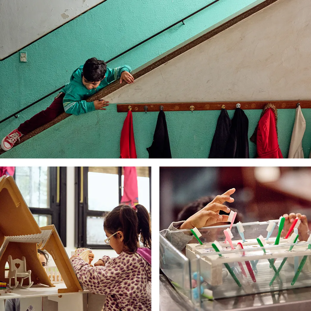 Am Mittag kommen die ersten Kinder aus der Schule. Im Heim ist es Zeit zum Essen. Es gibt Salat, Empanadas, Saft. Die Kinder sitzen zusammen, es wird geschnattert, gelacht. Die kleine Joselin spielt mit ihren Zöpfen, Rocia malt neben ihrem Teller ein großes Auto auf ein Blatt Papier, weil sie eines Tages Busfahrerin werden will. Mikael und Benjamin lassen ihre Gabeln durch die Luft fliegen, Rodrigo schnipst eine Papierkugel in den leeren Joghurtbecher: Tor!