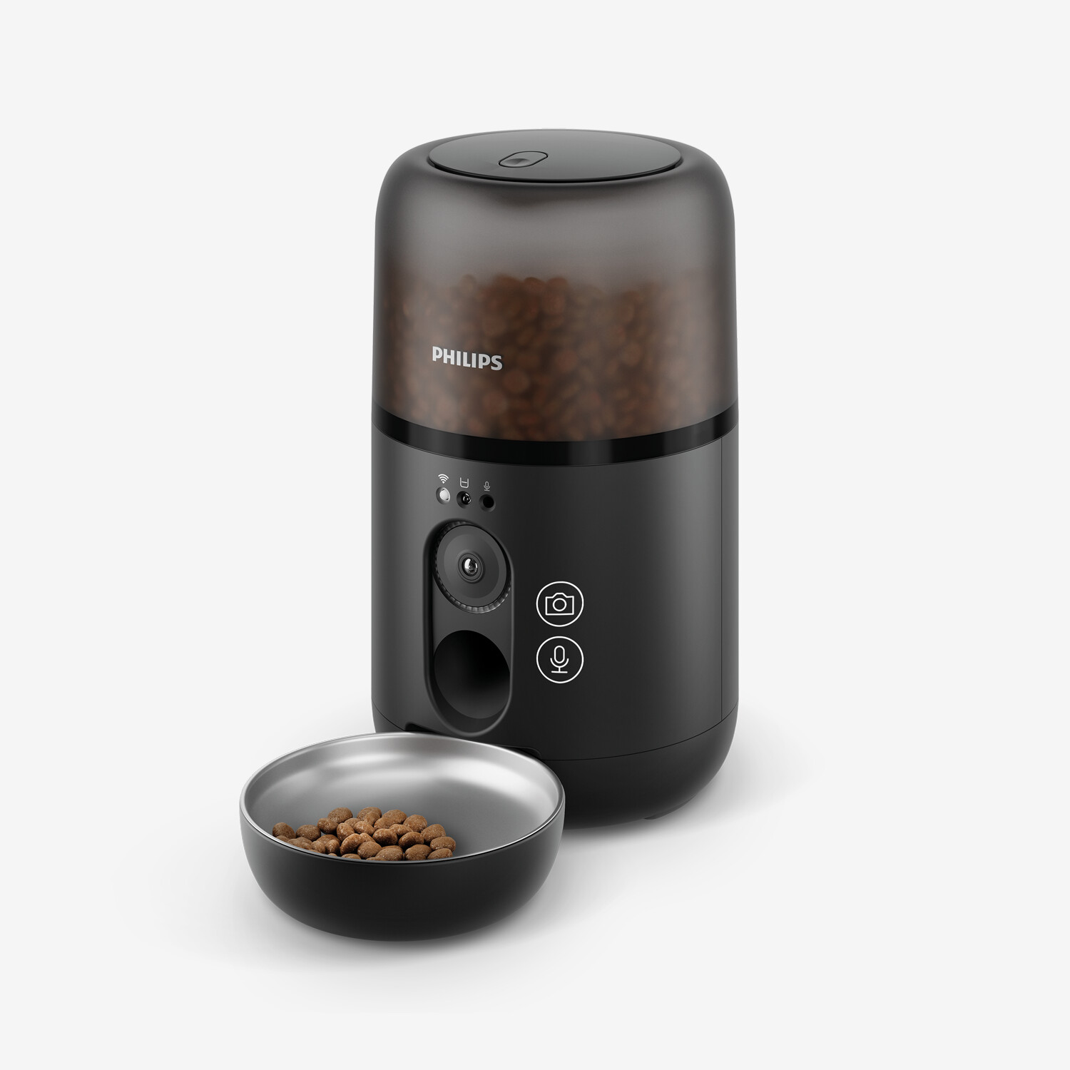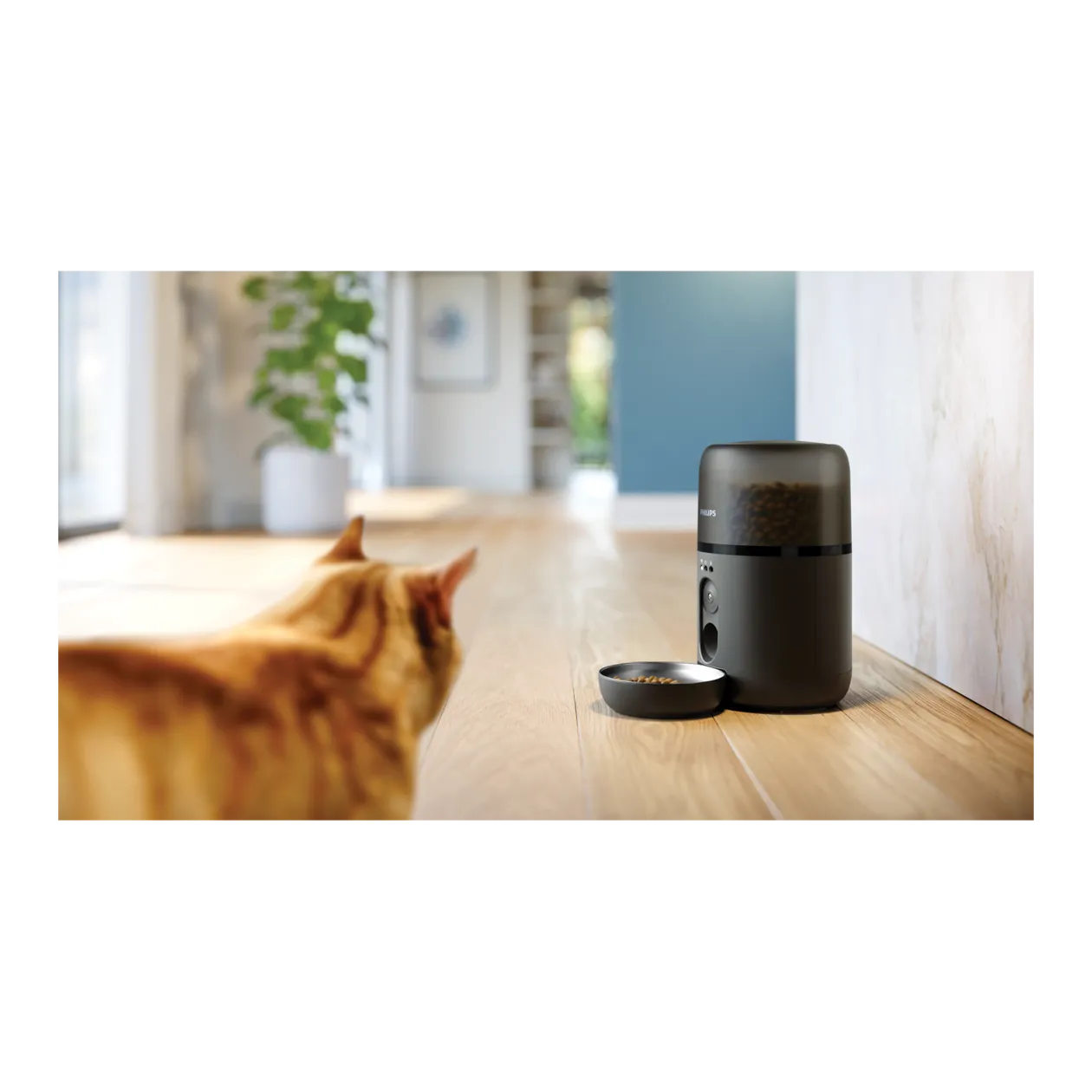 Mit dem Philips Pet Series Futterautomat ist Ihre Katze rund um die Uhr bestens versorgt. Der Futterautomat mit Kamera, Bewegungsmelder und Gegensprechanlage liefert frisches Futter bei jedem Happen und verfügt über eine Antiblockiertechnologie, damit Ihre Katze keine Mahlzeit verpasst. Gesteuert wird das Gerät ganz einfach mit der dazugehörigen kostenlosen App - mit Fütterungsplan, Mahlzeitenplaner und Benachrichtigungsfunktion, die Sie daran erinnert, wenn Futter nachgefüllt werden muss. Zudem bietet das Gerät ein reinigungsfreundliches Design und der Napf ist spülmaschinenfest - nicht nur Ihre Katze wird diesen Automaten lieben.