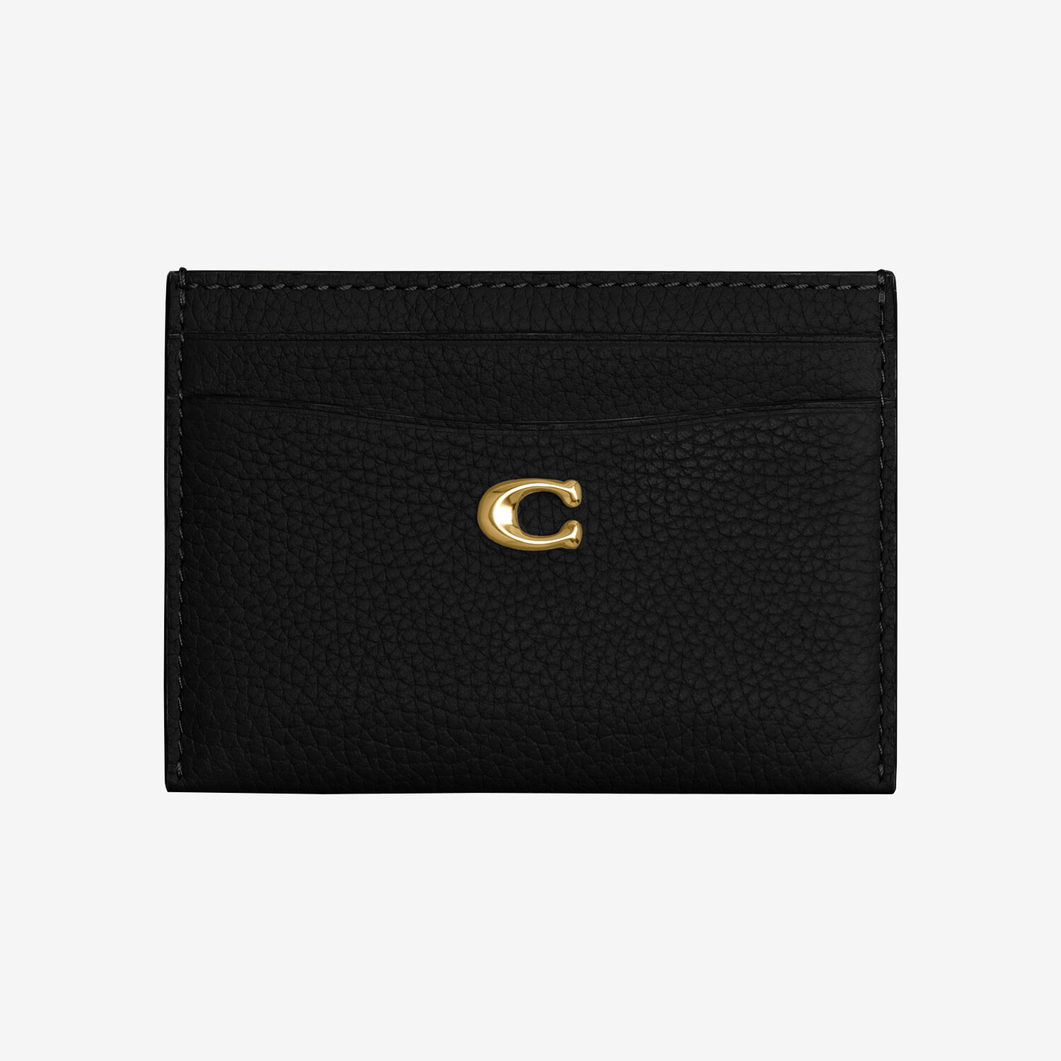 Son nom est évocateur. Ce porte-cartes en cuir* poli texturé vous offre toute la place nécessaire pour ranger vos moyens de paiement essentiels : six cartes de crédit, vos billets et même quelques pièces de monnaie. Grâce à ses dimensions compactes, l'Essential orné du C emblématique de Coach se glissera même dans un mini sac.