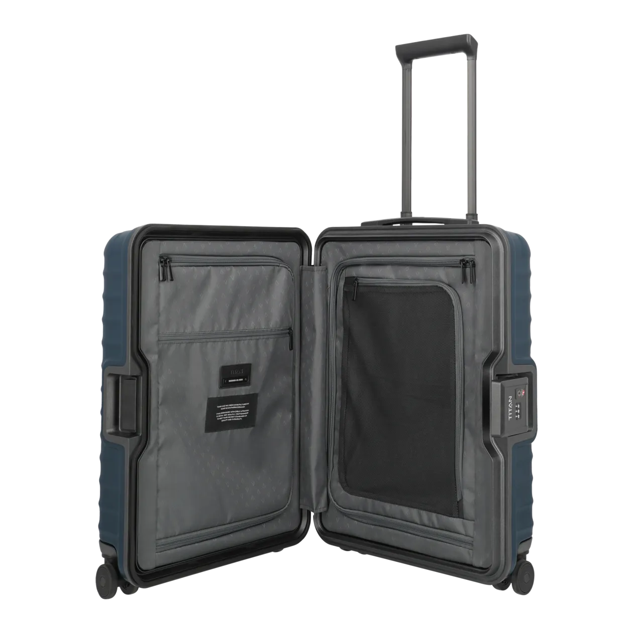 Cette valise cabine à roulettes allie fonctionnalité et finition haut de gamme. Idéale pour vos déplacements professionnels ou escapades du week-end. Dotée d'une structure stable, d'un seul cadenas et de roulettes confort faciles à manier, elle vous accompagne en voyage en toute sécurité et avec un minimum d'entretien. Fabriquée en Allemagne et équipée d'une étiquette de bagage séparée, la valise est garante d'une qualité sur laquelle vous pouvez compter.