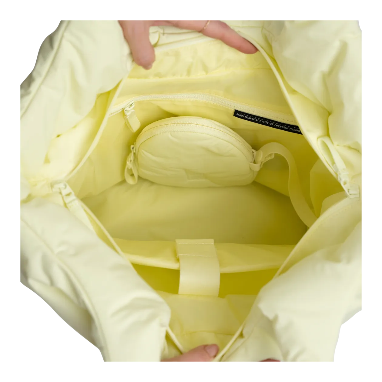 Questa borsa capiente dall'interno ben organizzato vi accompagna ovunque: è morbida come una nuvola, aderisce dolcemente al corpo e risulta molto comoda da indossare. È realizzata in nylon riciclato, leggero e idrorepellente, proveniente da reti da pesca in disuso. Nell'ampio scomparto principale con cerniera troverete non solo uno scomparto laterale e uno scomparto per laptop, ma anche una piccola tasca aggiuntiva rimovibile, per tenere i piccoli oggetti sempre a portata di mano. In sostanza, la CLOUD TOTE BAG è semplicemente perfetta per chi ama il buon design e l'organizzazione.