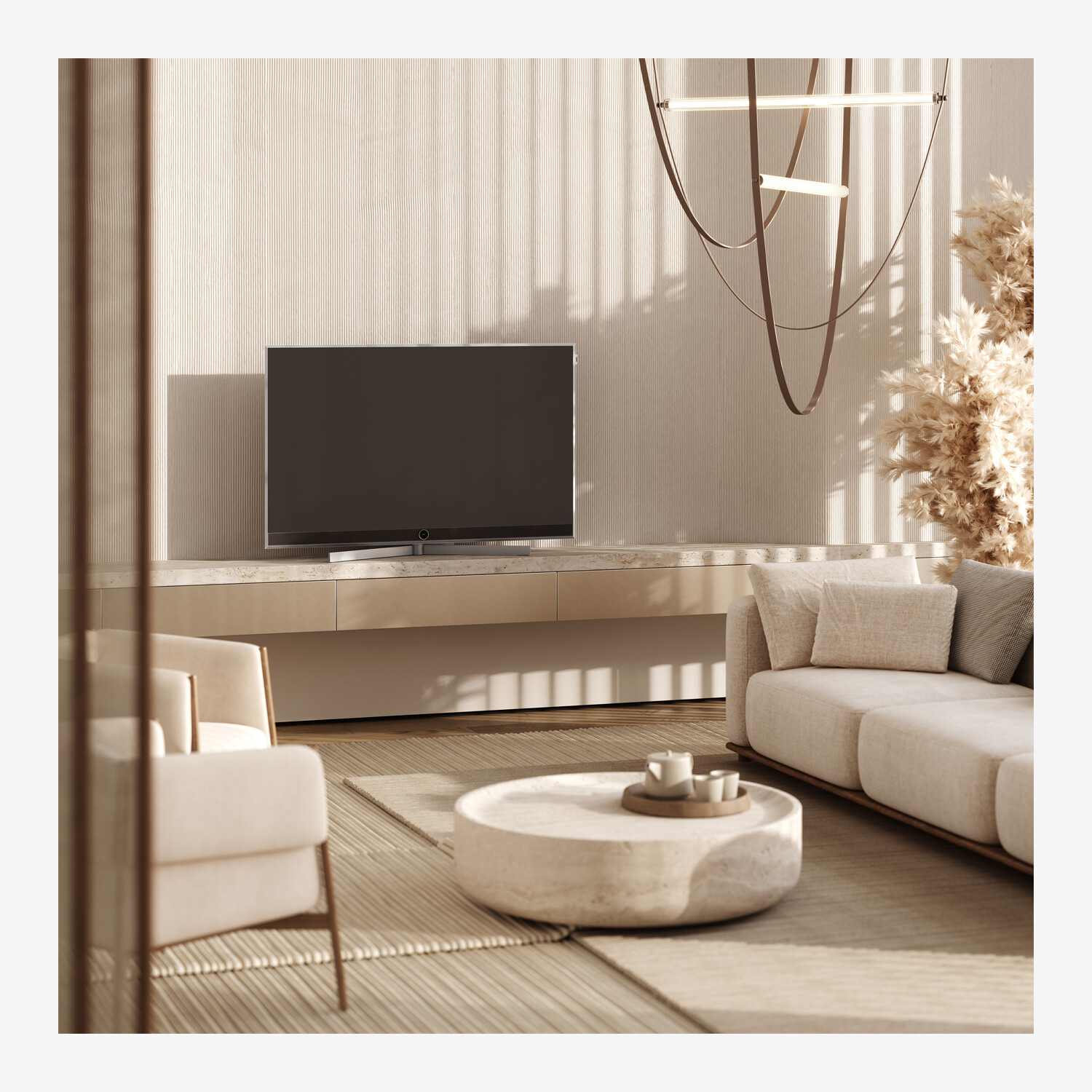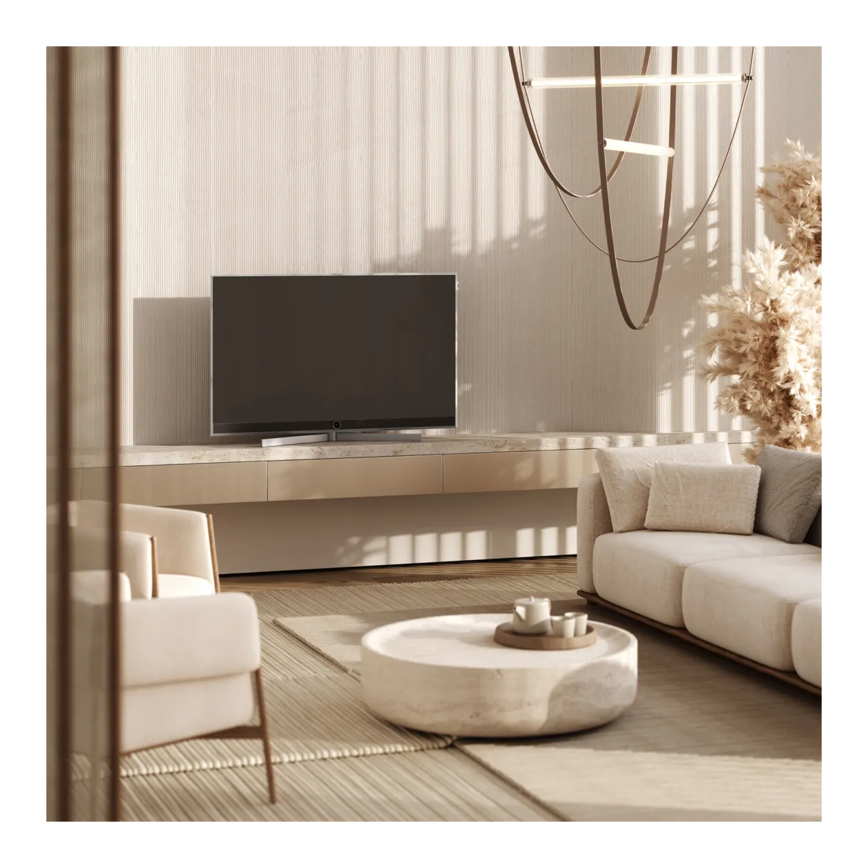 Il televisore Loewe stellar dr+ è dotato di uno chassis a due canali, doppi sintonizzatori tripli, un sistema operativo rapido e intelligente e un registratore SSD integrato. Offre quindi tante pratiche funzioni per la multivisione e la multiregistrazione, dalle registrazioni con EPG al timeshift spontaneo. La soundbar integrata con Loewe magic.light garantisce un audio eccellente, completando alla perfezione la ricca dotazione di questo versatile dispositivo per l'intrattenimento domestico.